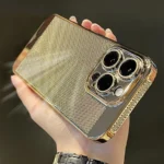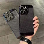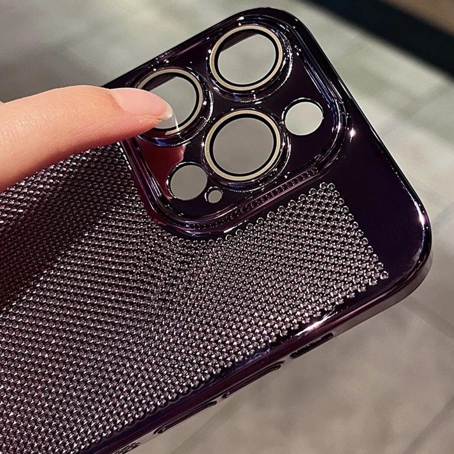 أغطية ظهر صلبة مطلية بطلاء لامع لهاتف أيفون 15 14 13 12 11 Pro Max Plus مع غطاء حماية للعدسة بشبكة غطاء هاتف